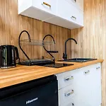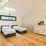 The Pawlowo property offers a full kitchen with all necessary appliances, like coffee and tea making machines, a fridge, and kitchenware. Guests are welcome to enjoy an outdoor swimming pool and a private garden.